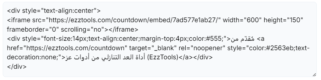 الكلمات المفتاحية المقترحة: عدّاد تنازلي, عداد عربي, تضمين عداد, مشاركة عدّ, تقويم هجري