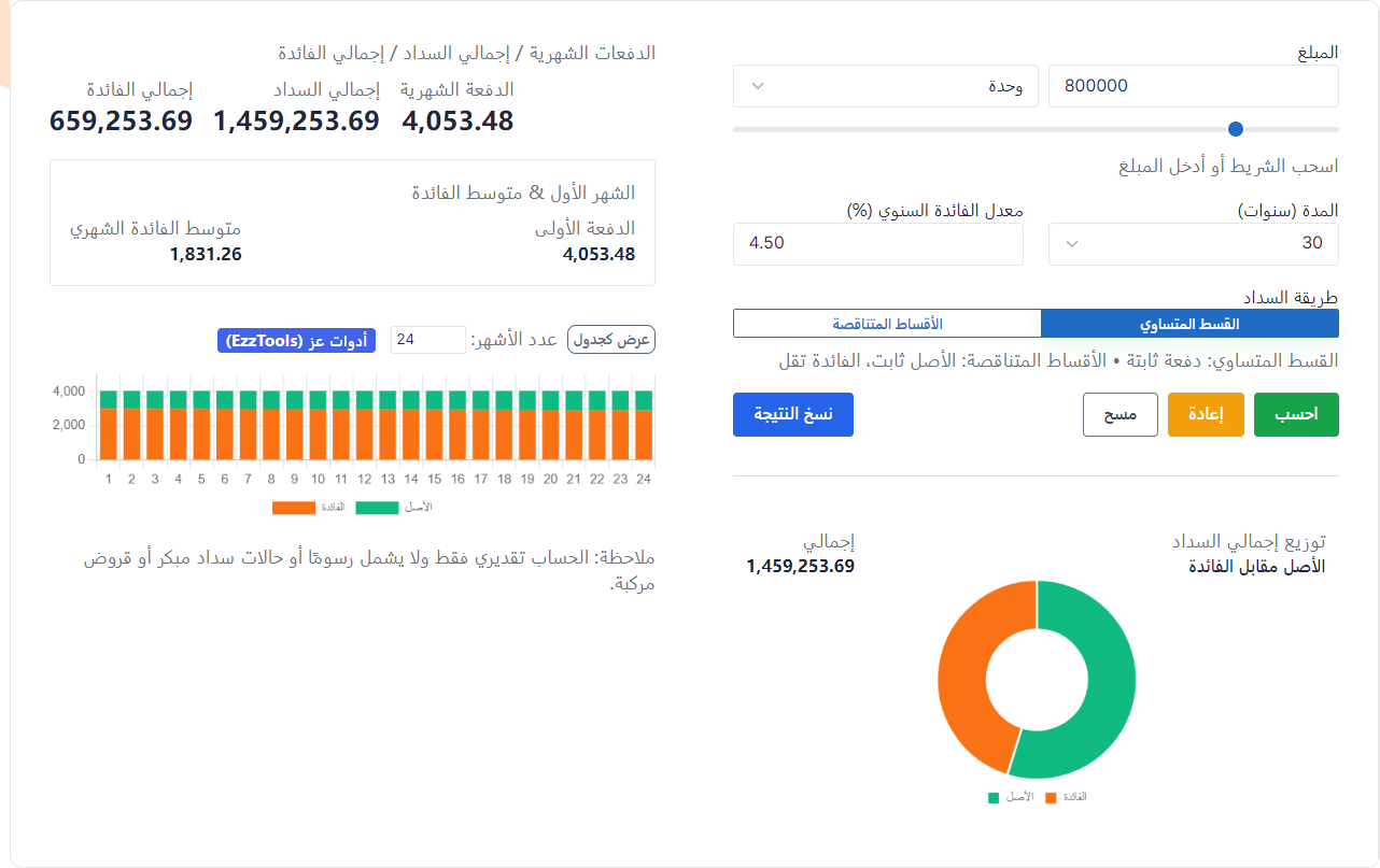 حاسبة التمويل العقاري – أدوات عز (EzzTools)